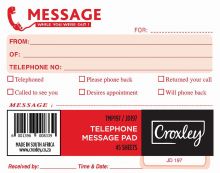 CROXLEY JD197 Telephone Message Pad 45 Sheet